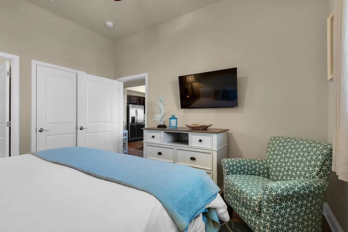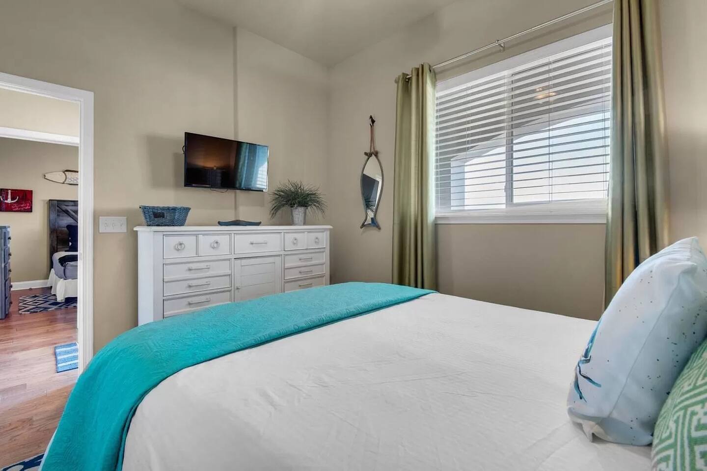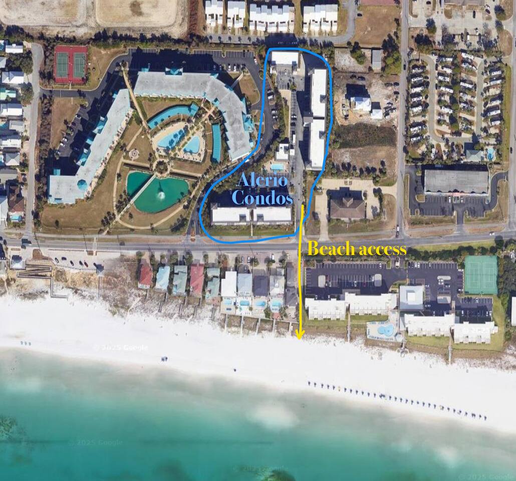 Bedrooms & Bathrooms In the three large bedrooms you have a King, Queen, and Queen bed, respectively. The main bedroom has a huge ensuite bathroom, with a separate soaking tub and walk in shower. Each bedroom has its own brand new 4K smart TV with Roku (for Netflix and all your other apps) and with cable. Everything is beautifully decorated and comfortable, with just a touch of beach fun. Kitchen The huge kitchen is fully equipped with all the appliances, cookware, serving dishes, and silverware you need to prepare full meals as if youâre at home. The kitchen peninsula has bar seating for four, and the dining table seats six. Living Room and Balcony The enormous living room is handsomely decorated, with soft chairs and nice furniture continuing the luxury/beach theme. The couch can fold out into a full size bed if you need room for two more guests. The balcony has outdoor furniture, and is the perfect place for your morning coffee. You can even see a small glimpse of the ocean between some of the buildings. Other Amenities Of course the whole condo has wifi and central air conditioning / heat. Thereâs a washer and dryer in the condo. Pool & Condo Complex Amenities Inside the gated condo complex, you've got a heated pool, and hot tub, and charcoal grills for the exclusive use of condo guests. The parking lot is patrolled by a security guard, for your safety. Beach The beach is right across the street from the condo, maybe a 200 yard walk from the building to the sand. It takes most people about 2 minutes (unless carrying the cooler). We have stocked the condo with beach umbrellas, chairs, a cooler, and some bags to help you carry stuff to the beach. Nearby Around the condo you have Seascape Golf Course, Silver Sands Outlet Mall, and lots of restaurants and other attractions. Parking Note In the summer season (March 1 - October 31), there is parking for one vehicle for each condo. The property does not allow boats, trailers, or over-sized vehicles/buses. If you need to bring an additional vehicle, there is some public parking, and a local RV park called Geronimo RV Park where you can pay to park additional vehicles. In the winter season, parking is restricted only to guests who are staying at Alerio, but you can bring more than one vehicle.