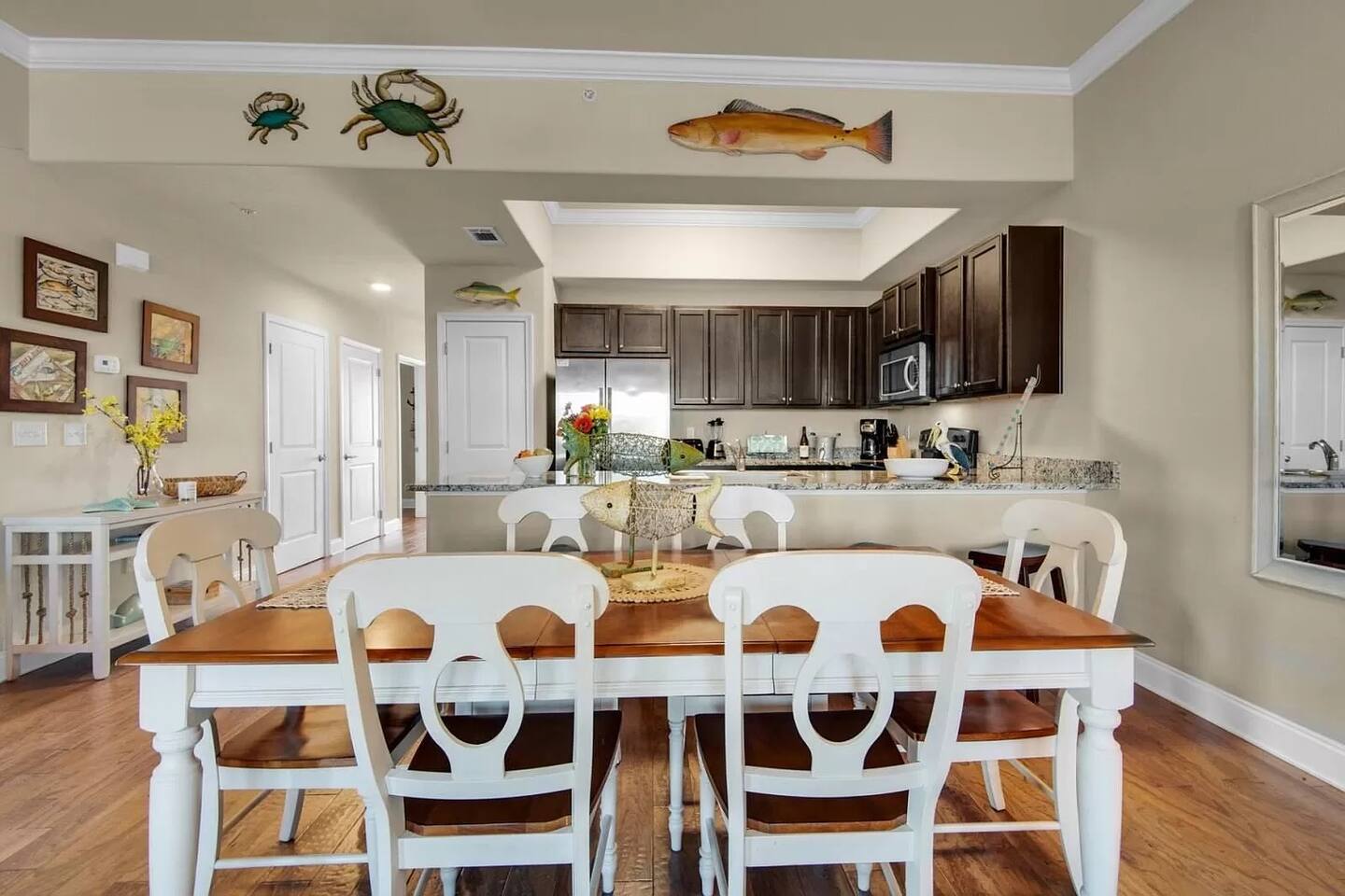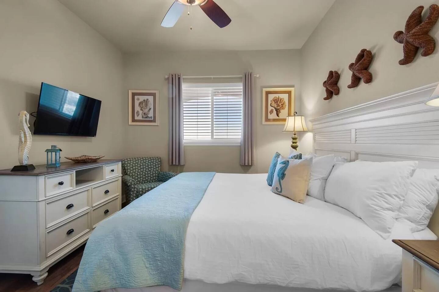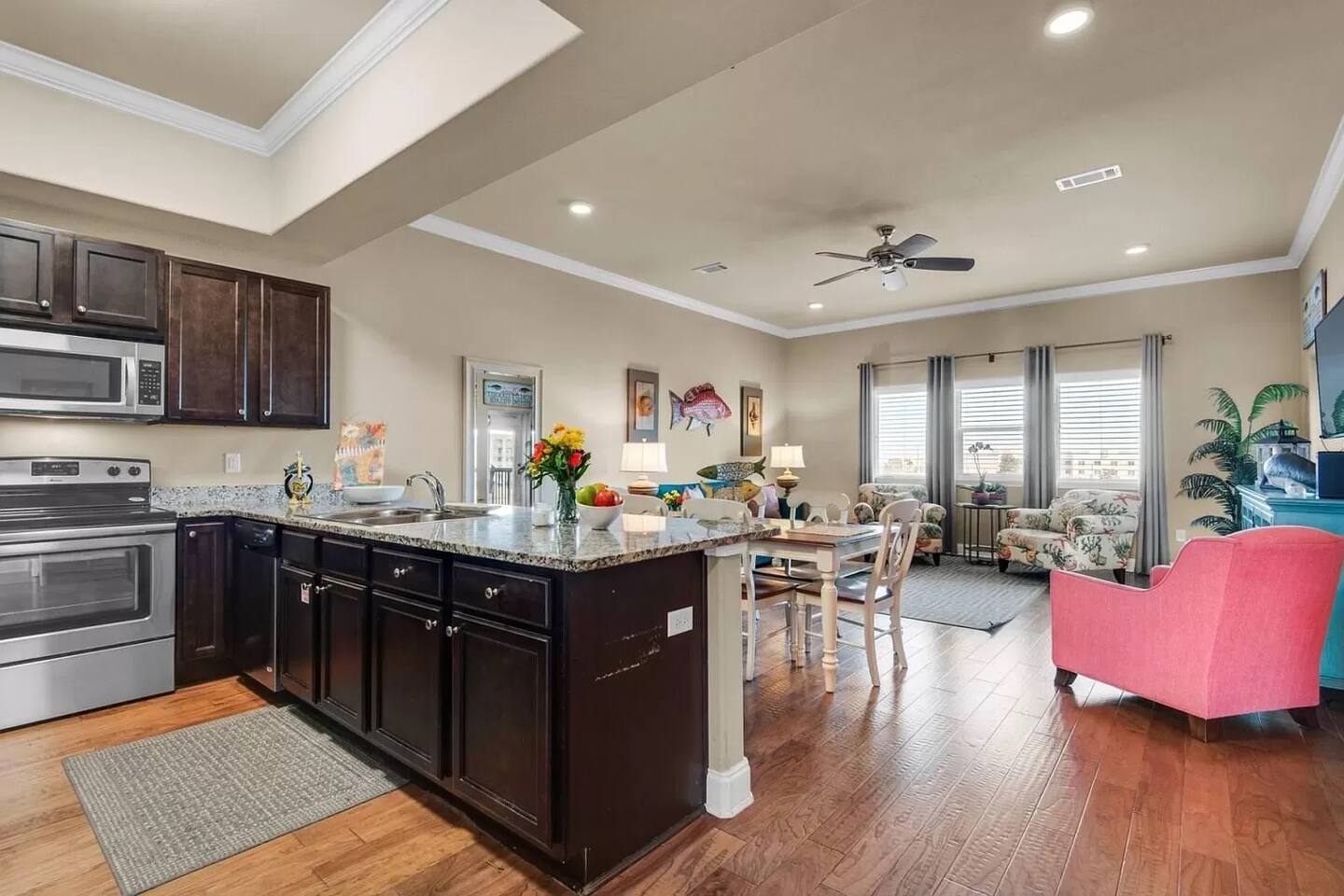 Bedrooms & Bathrooms In the three large bedrooms you have a King, Queen, and Queen bed, respectively. The main bedroom has a huge ensuite bathroom, with a separate soaking tub and walk in shower. Each bedroom has its own brand new 4K smart TV with Roku (for Netflix and all your other apps) and with cable. Everything is beautifully decorated and comfortable, with just a touch of beach fun. Kitchen The huge kitchen is fully equipped with all the appliances, cookware, serving dishes, and silverware you need to prepare full meals as if youâre at home. The kitchen peninsula has bar seating for four, and the dining table seats six. Living Room and Balcony The enormous living room is handsomely decorated, with soft chairs and nice furniture continuing the luxury/beach theme. The couch can fold out into a full size bed if you need room for two more guests. The balcony has outdoor furniture, and is the perfect place for your morning coffee. You can even see a small glimpse of the ocean between some of the buildings. Other Amenities Of course the whole condo has wifi and central air conditioning / heat. Thereâs a washer and dryer in the condo. Pool & Condo Complex Amenities Inside the gated condo complex, you've got a heated pool, and hot tub, and charcoal grills for the exclusive use of condo guests. The parking lot is patrolled by a security guard, for your safety. Beach The beach is right across the street from the condo, maybe a 200 yard walk from the building to the sand. It takes most people about 2 minutes (unless carrying the cooler). We have stocked the condo with beach umbrellas, chairs, a cooler, and some bags to help you carry stuff to the beach. Nearby Around the condo you have Seascape Golf Course, Silver Sands Outlet Mall, and lots of restaurants and other attractions. Parking Note In the summer season (March 1 - October 31), there is parking for one vehicle for each condo. The property does not allow boats, trailers, or over-sized vehicles/buses. If you need to bring an additional vehicle, there is some public parking, and a local RV park called Geronimo RV Park where you can pay to park additional vehicles. In the winter season, parking is restricted only to guests who are staying at Alerio, but you can bring more than one vehicle.