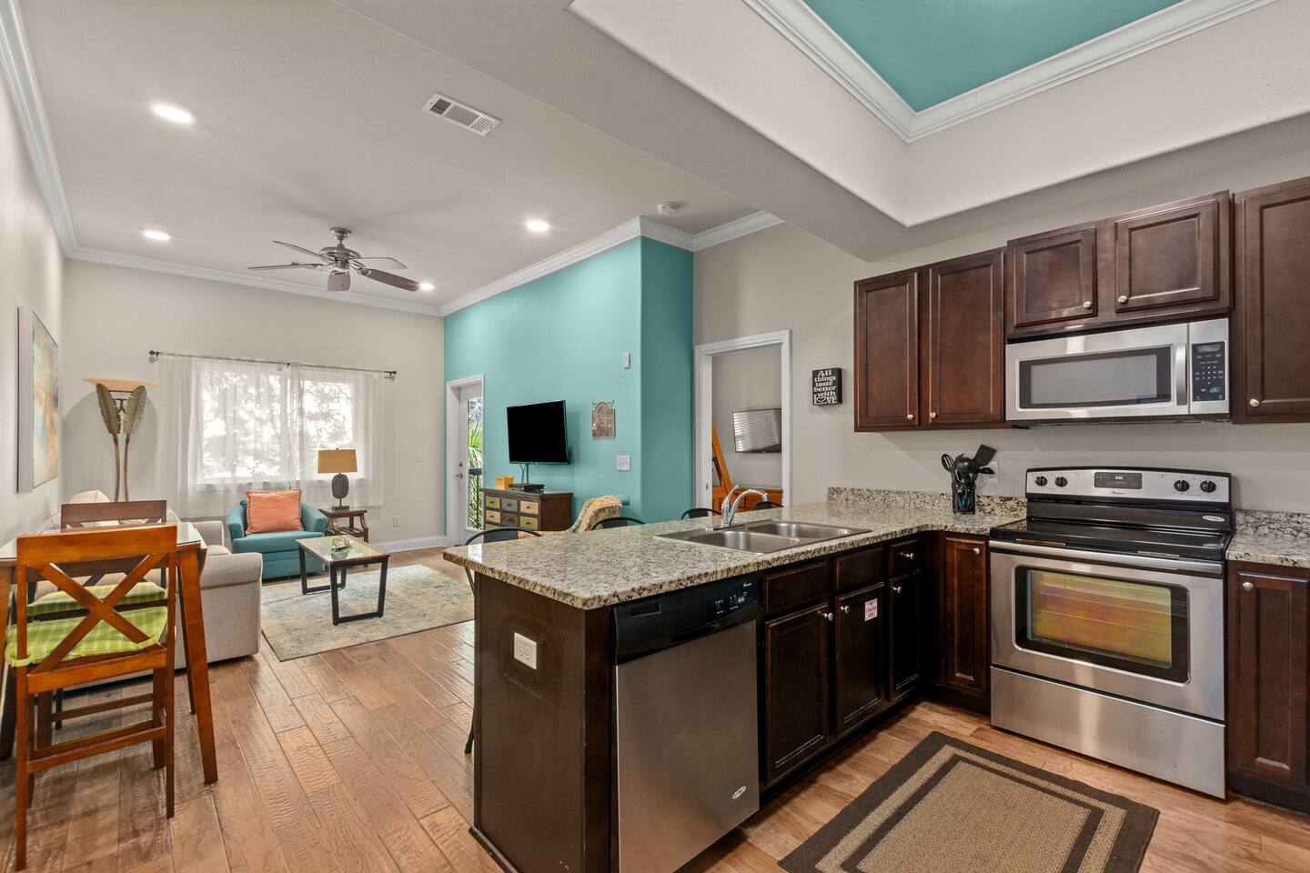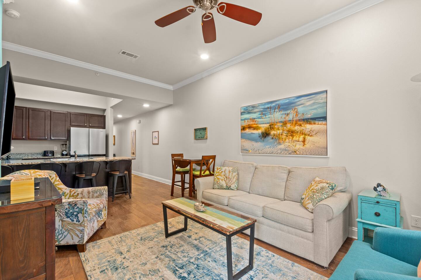 A modern, clean, fun, family-friendly condo, right across from the beach (about 3 minute stroll), in Miramar Beach / Destin.