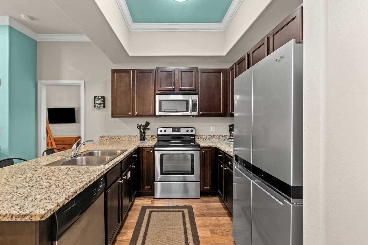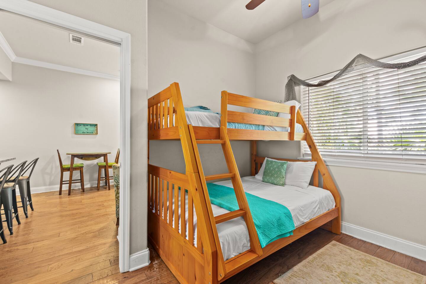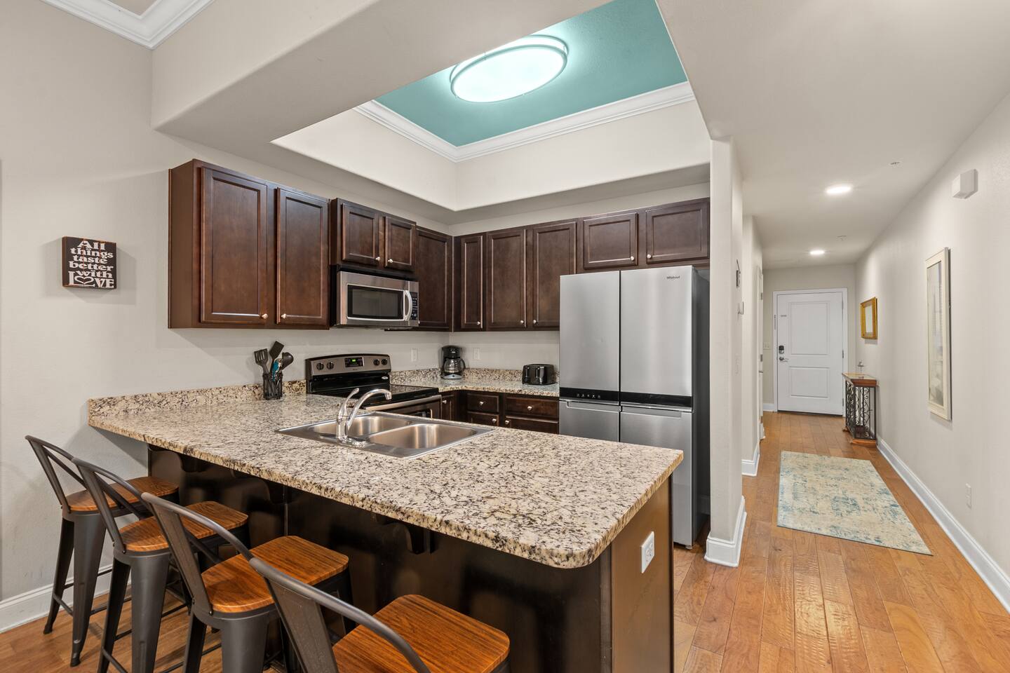 Bedrooms & Bathrooms In bedroom one you have a King size bed. In bedroom two you have a bunk bed– double (1 person) over full (2 people). There are two bathrooms, one of them an ensuite for the main bedroom. Each bedroom has its own TV with cable. Everything is beautifully decorated and comfortable, with just a touch of beach fun. Kitchen The modern kitchen is fully equipped with all the appliances, cookware, serving dishes, and silverware you need to prepare full meals as if you’re at home. Living Room and Balcony The living room is handsomely decorated, with soft chairs and nice furniture continuing the luxury/beach theme. The couch can fold out into a full size bed if you need room for two more guests. The balcony has outdoor furniture, and is the perfect place for your morning coffee. Other Amenities Of course the whole condo has wifi and central air conditioning / heat. There’s a washer and dryer in the condo. Pool & Condo Complex Amenities Inside the gated condo complex, you've got a heated pool, and hot tub, and charcoal grills for the exclusive use of condo guests. The parking lot is patrolled by a security guard, for your safety. Beach The beach is right across the street from the condo complex, maybe a 300 yard walk from the building to the sand. It takes most people about 3 minutes (unless carrying the cooler). We’ve provided an umbrella and some beach chairs for free, but there’s also a company at the beach that rents equipment if you want something fancier. Nearby Around the condo you have Seascape Golf Course, Silver Sands Outlet Mall, and lots of restaurants and other attractions. Parking Note In the summer season (March 1 - October 31), there is parking for one vehicle for each condo. The property does not allow boats, trailers, or over-sized vehicles/buses. If you need to bring an additional vehicle, there is some public parking, and a local RV park called Geronimo RV Park where you can pay to park additional vehicles. In the winter season, parking is restricted only to guests who are staying at Alerio, but you can bring more than one vehicle.