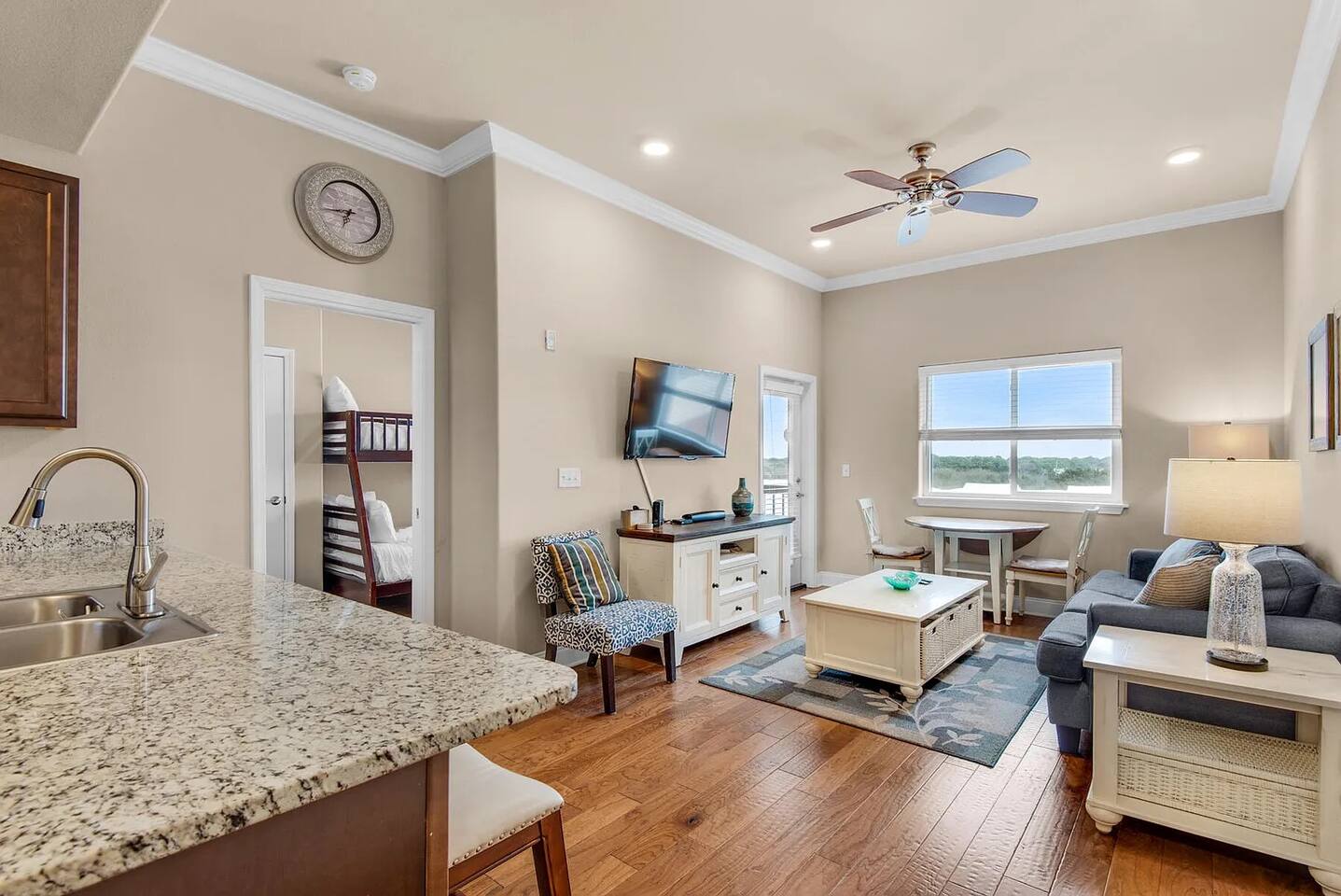 A cute, clean, modern, family-friendly, condo, right across from the beach (about 3 minute stroll), in Miramar Beach / Destin.