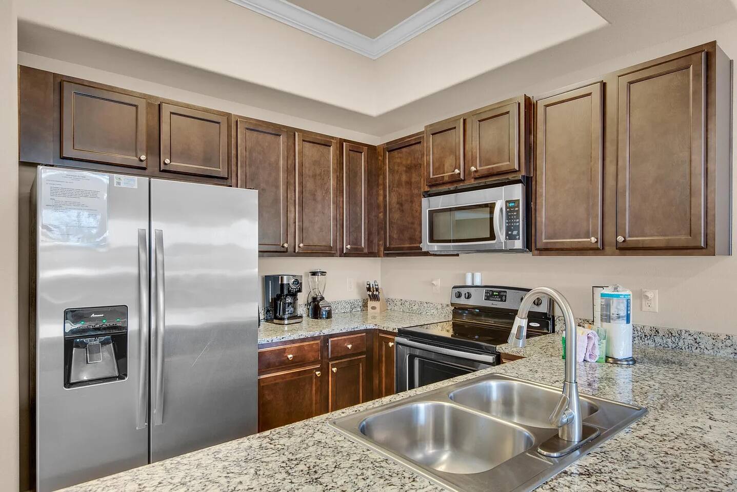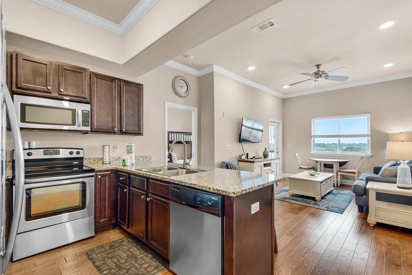 Bedrooms & Bathrooms In bedroom one you have a King size bed. In bedroom two you have a bunk bed– double (1 person) over full (2 people). There are two bathrooms, one of them an ensuite for the main bedroom. Each bedroom has its own TV with both cable and wifi/smart features, so you can use your Netflix and other services. Everything is beautifully decorated and comfortable, with just a touch of beach fun. Kitchen The modern kitchen is fully equipped with all the appliances, cookware, serving dishes, and silverware you need to prepare full meals as if you’re at home. Living Room and Balcony The living room is handsomely decorated, with soft chairs and nice furniture continuing the luxury/beach theme. The couch can fold out into a full size bed if you need room for two more guests. The balcony has outdoor furniture, and is the perfect place for your morning coffee. Other Amenities Of course the whole condo has wifi and central air conditioning / heat. There’s a washer and dryer in the condo. Pool & Condo Complex Amenities Inside the gated condo complex, you've got a heated pool, and hot tub, and charcoal grills for the exclusive use of condo guests. The parking lot is patrolled by a security guard, for your safety. Beach The beach is right across the street from the condo complex, maybe a 300 yard walk from the building to the sand. It takes most people about 3 minutes (unless carrying the cooler). At the beach there’s a company that rents beach chairs and umbrellas, but that’s optional; you can bring your own. We usually have some beach equipment in the condo for you to borrow. Nearby Around the condo you have Seascape Golf Course, Silver Sands Outlet Mall, and lots of restaurants and other attractions. Parking Note In the summer season (March 1 - October 31), there is parking for one vehicle for each condo. The property does not allow boats, trailers, or over-sized vehicles/buses. If you need to bring an additional vehicle, there is some public parking, and a local RV park called Geronimo RV Park where you can pay to park additional vehicles. In the winter season, parking is restricted only to guests who are staying at Alerio, but you can bring more than one vehicle.